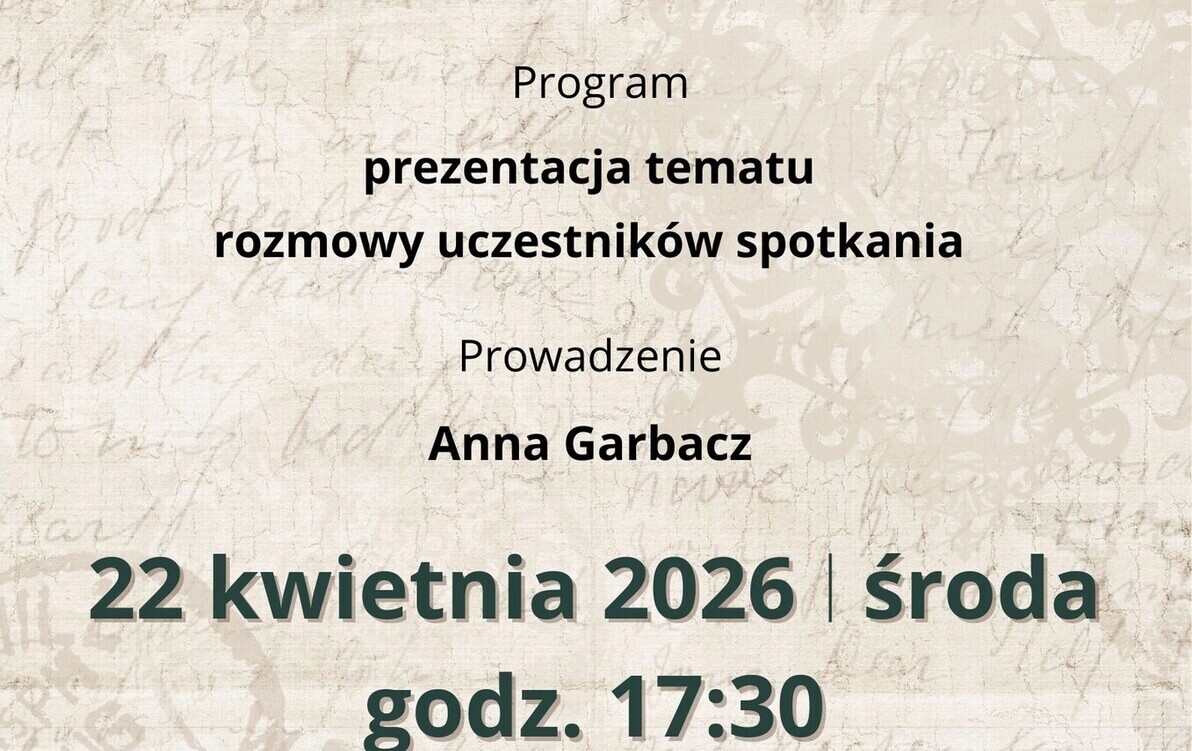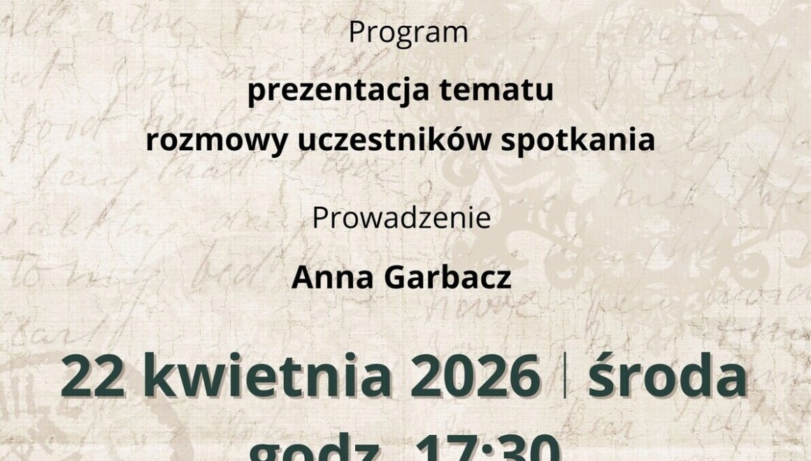 Spotkanie odbędzie się 22 kwietnia o godzinie 17.30 w Miejskiej Bibliotece Publicznej, jak zwykle przy kawie i słodkim poczęstunku. I – też jak zwykle – wstęp jest wolny. Każdy miłośnik lokalnej historii i muzyki chóralnej będzie mile widziany.