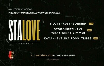Podczas muzycznego weekendu 5-7 września na Błoniach nad Sanem, będą świętowane urodziny miasta. Jak informuje prezydent muzyczny festiwal będzie jednocześnie podziękowaniem dla wszystkich pokoleń, które każdego dnia, od ponad ośmiu dekad, swoją ciężką pracą budują siłę i potencjał Stalowej Woli.