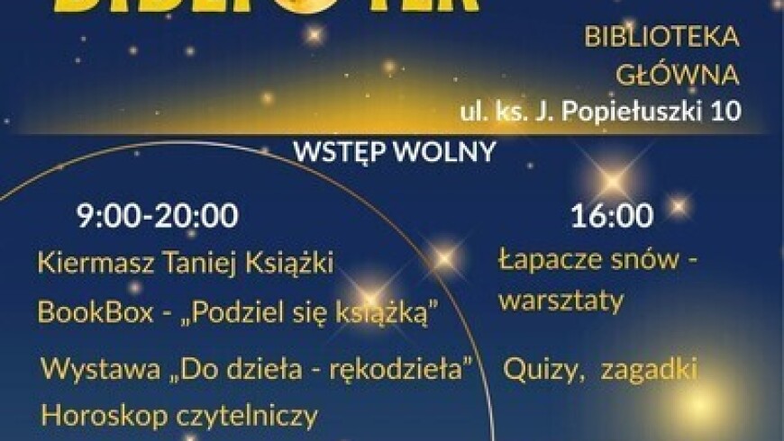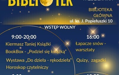 Otwieramy drzwi Biblioteki Głównej dla wszystkich miłośników książek i dobrej zabawy od godz. 9:00 do godz. 20:00. Przygotowaliśmy rozmaite atrakcje, które z pewnością umilą Wam czas.