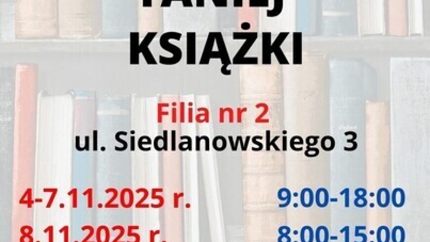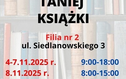 Od wtorku, 4 listopada rusza Kiermasz Taniej Książki w Filii nr 2 przy ul. M. Siedlanowskiego 3. Literaturę w okazyjnej cenie będzie można nabyć w tej placówce przez cały tydzień.