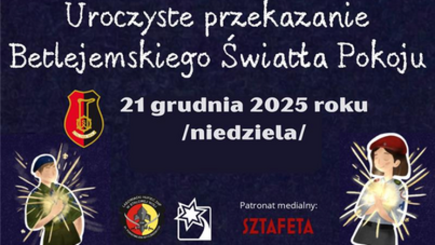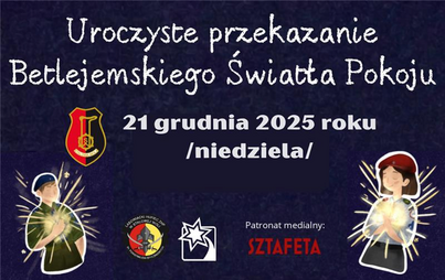 Prezydent Miasta Stalowej Woli Lucjusz Nadbereżny oraz Komendantka Hufca ZHP Stalowa Wola phm. Diana Mróz zapraszają na uroczyste przekazanie Betlejemskiego Światła Pokoju, które odbędzie się w niedzielę, 21 grudnia 2025 roku.
